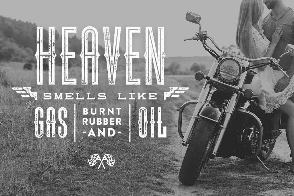 The inspiration to create this font family came from my love of retro motorcycle parts, greasy American ‘dive’ bars, antique machinery & rockabilly album covers.