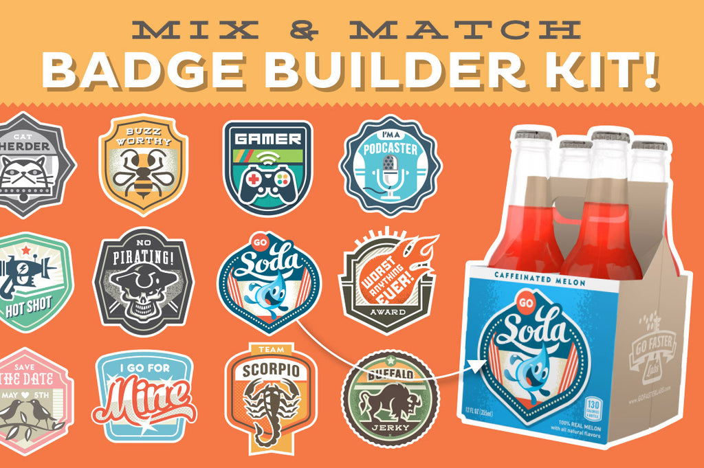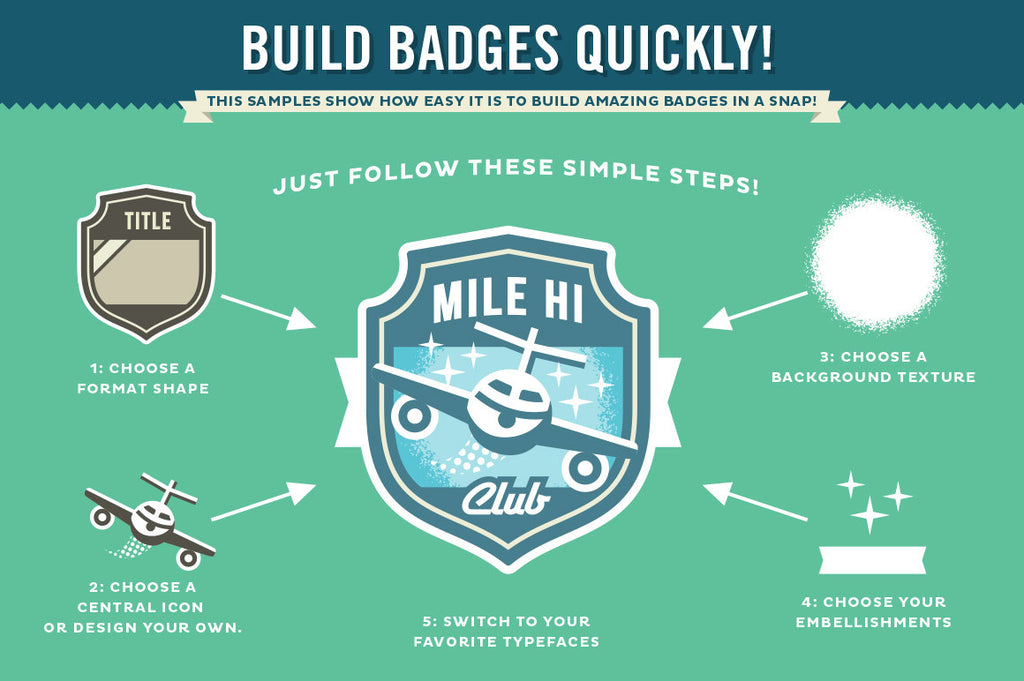 So... I dedicated myself to creating & compiling a reliable set of modular badge components to have on hand for such occasions. This set can be used “as is” or mixed & matched with your own ideas, concepts, palettes and fonts.