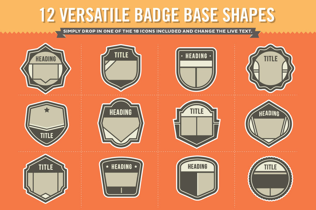 - 12 Amazingly Editable Retro flavored badge base frames.