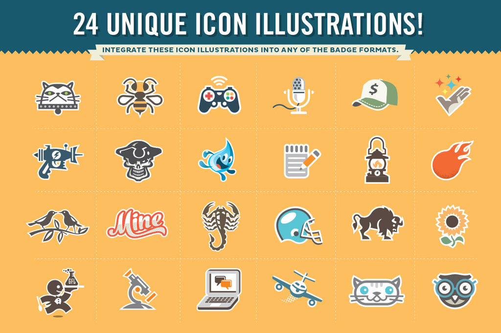 - 24 Fantastic Icons to easily drop into your badge creations.