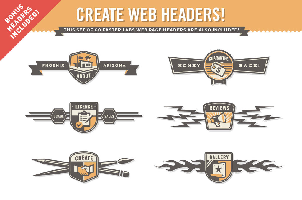 Purchase this set of easily customizable badges and keep them handy! Blow your client’s mind by quickly building stellar badge creations, web page headers or logo sets on demand!